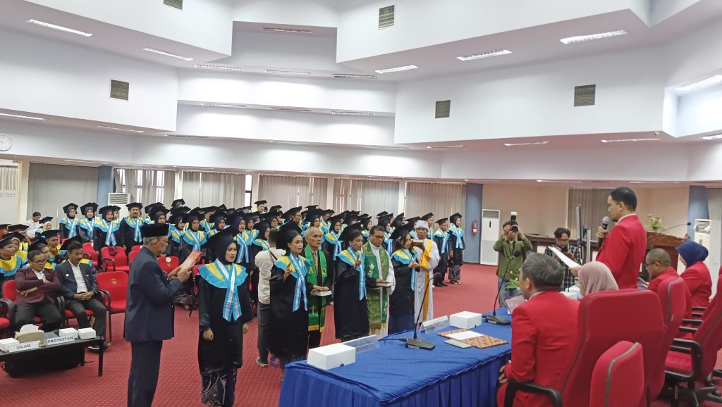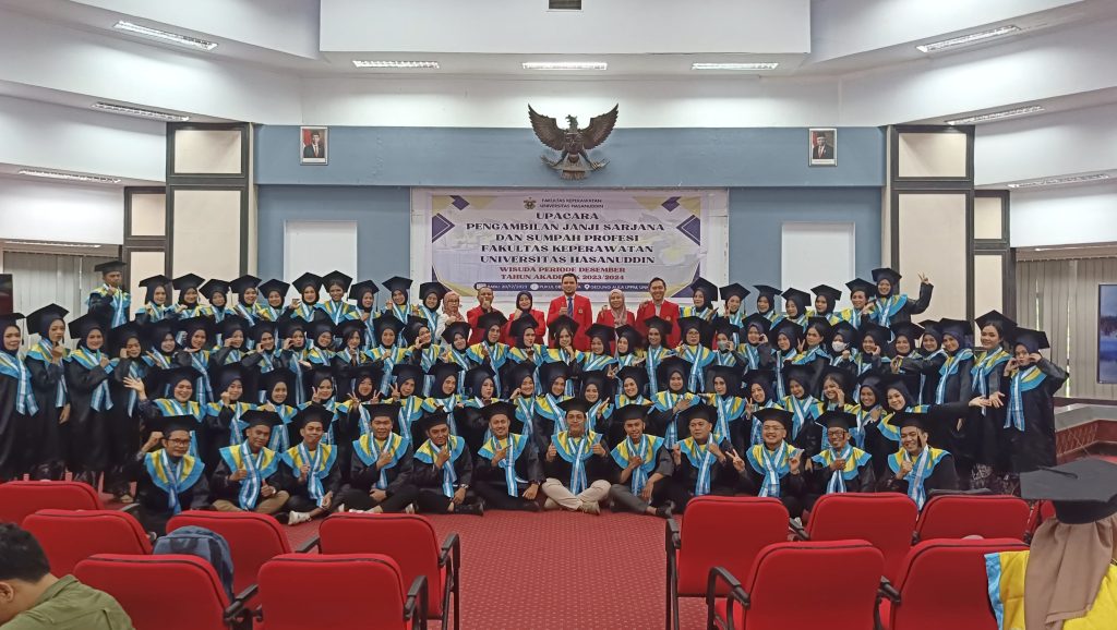 F.Kep held the Taking of the Bachelor’s Pledge and Graduation Professional Oath for the December 2023/2024 period on Wednesday, (20/12) at the LPPM Unhas Building, attended by representatives of the Nursing Organization (PPNI) and Physiotherapy (IFI). Also present at the activities were WD 1, KPS, Spiritualists, and Nursing and Physiotherapy Graduates.