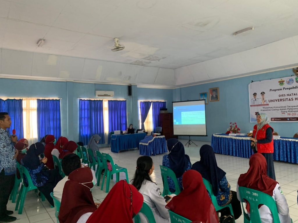 Ketua tim pengabmas, Prof. Dr. Ariyanti Saleh, S.Kp.,M.Si, menjelaskan terkait pentingnya hubungan terapeutik perawat dan pasien serta kemampuan analisis diri perawat, menyampaikan bahwa “komunikasi terapeutik menjadi senjata penting bagi perawat dalam memberikan dan meningkatkan kualitas asuhan keperawatan maupun kebidanannya”. Prof Yanti juga menekankan pentingnya bagi perawat dan bidan untuk menyadari kemampuan diri dan menganalisis diri sebagai bagian dari peningkatan “caring”,  skill dan kemampuan dalam memberikan pelayanan kepada pasien.